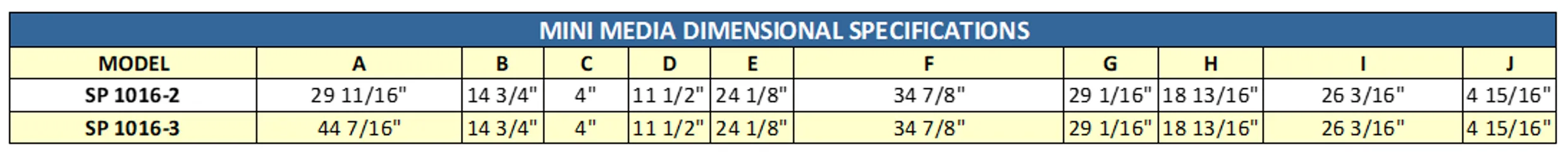 Superior filter performance is achieved by the added features of a larger inlet, two-stage deflector, 14″ media bed depth, gravel pack and a hydraulically balanced underdrain to produce a low pressure drop which will produce longer run times between backwashes.