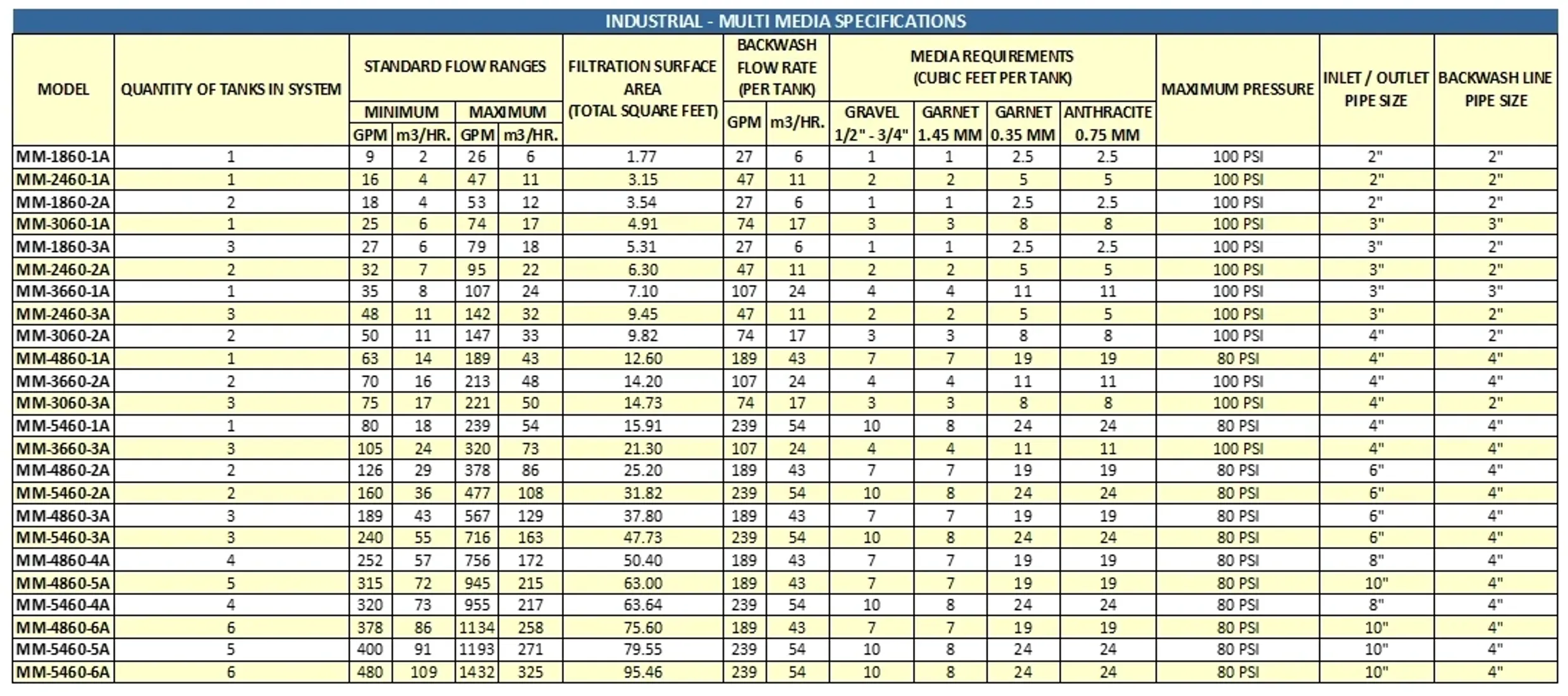 Yardney Multi-Media Filters are designed for enhanced water quality filtration for the removal of organic and inorganic suspended solids down to 5 microns. Multi-Media filters may be used as a stand-alone system or in conjunction with, or as a pretreatment for, other filtration technologies. The Multi-Media filtration systems utilize a vertical side shell depth of 60″ with accompanied reverse stacked medias for progressive filtration through the filtration system. All Yardney industrial media filters utilize our simple backwash system for ease of operation and consistent water quality.