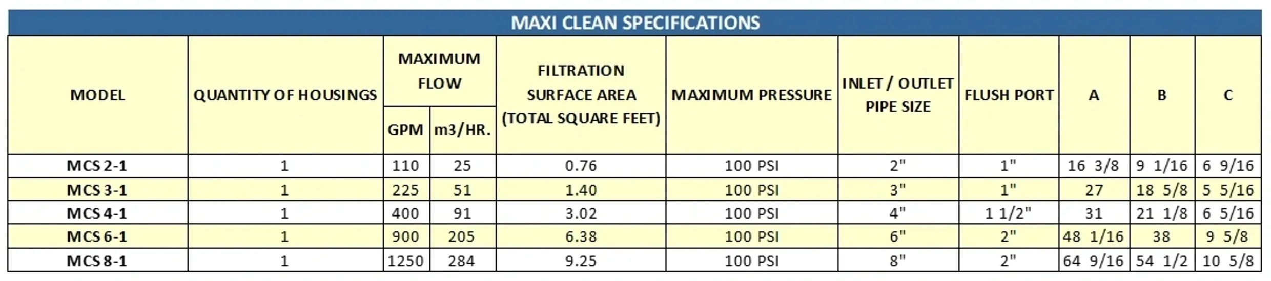 Yardney Maxi-Clean Screen Filters are designed for high performance contamination removal in applications where durability and economy are essential. Constructed of heavy-gauge carbon or stainless steel, Maxi-Clean filters are lined with 3M Scotchkote® 134 fusion bonded epoxy for excellent protection from the environment and long product life. The Maxi‑Clean screen filter is easy to operate and comes standard with grooved couplings, manifolds and all accessories for ease of installation.