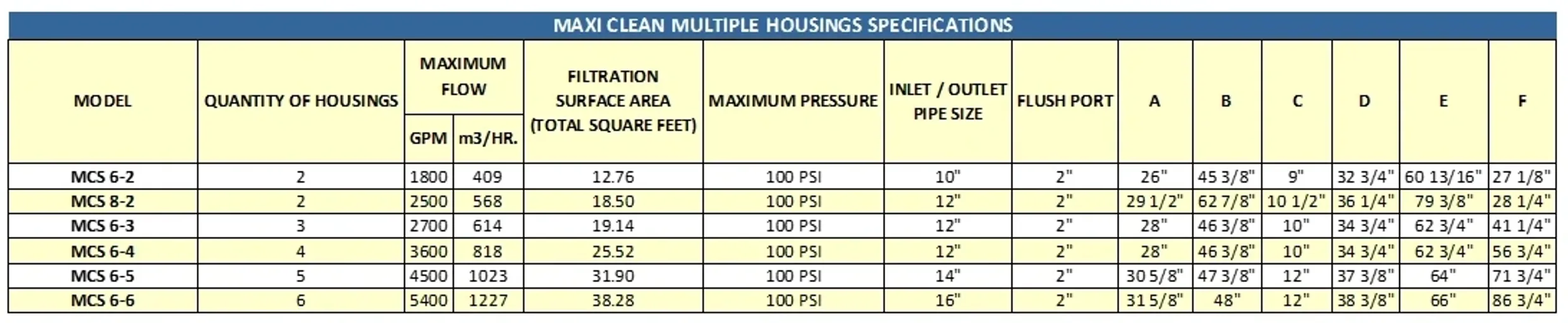 - Large screen area produces less than 2 psi pressure drop accompanied by long run times between cleanings