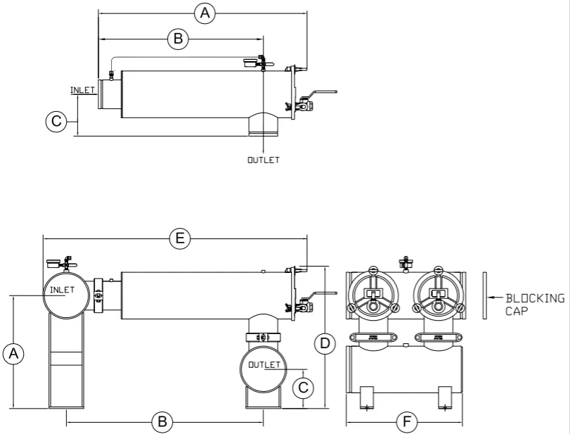 - Multiple housings include inlet and outlet manifolds and grooved couplings to connect all components