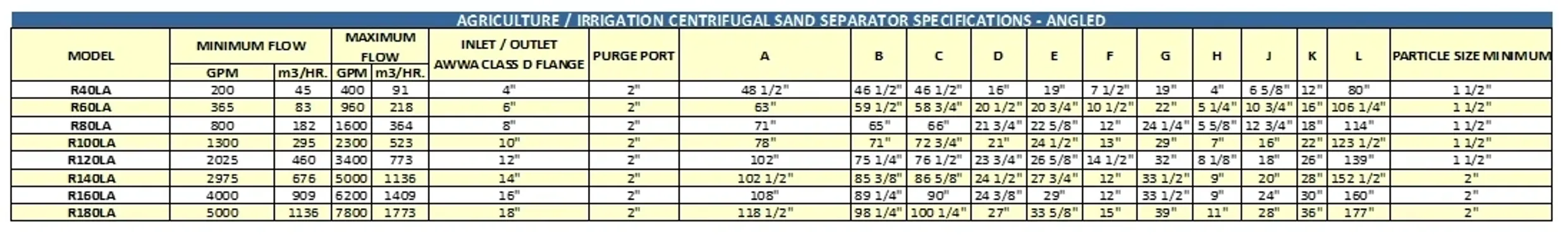 - Serves as an excellent pre-filter to allow for improved sand media or screen filter performance by removing the gross solids out of the water source