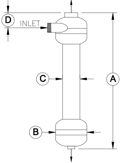- Vertical models include female threaded inlet and outlet connections and a threaded purge port for purging of contaminants or hookup of automatic flush valve