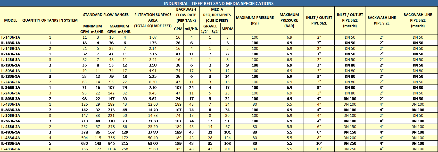 Yardney Deep Bed Sand Media Filters are designed for the most challenging dirty water conditions with a high-performance solution for water filtration down to 15 microns. These durable carbon steel filters utilize a 36″ vertical side shell depth for removal of organic and inorganic suspended solids for filtering large volumes of water with very little pressure drop and a long-term value. All Yardney industrial media filters utilize our simple backwash system for ease of operation and consistent water quality.